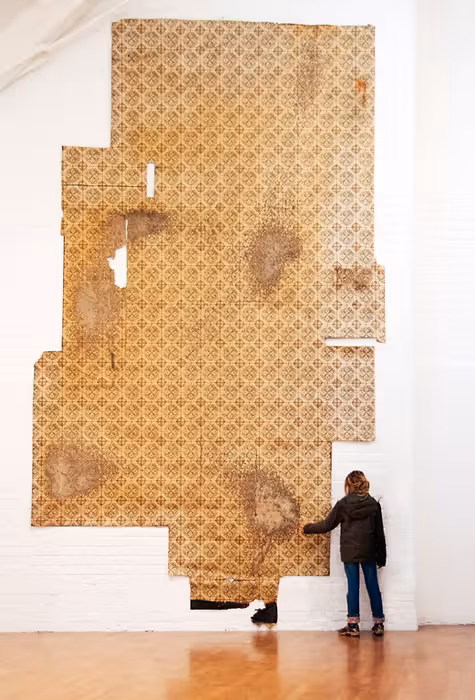 “Oma was the name I called my grandmother. She put the lino down in the 1960’s and over four decades her feet gradually wore through the decorative pattern. Over the years marks appeared in front of the oven, the sink, the front door, where she turned around in front of the fridge, where she sat at her table shuffling her feet. Like a drawing made over forty years, these worn patches describe half a lifetime of movement.”